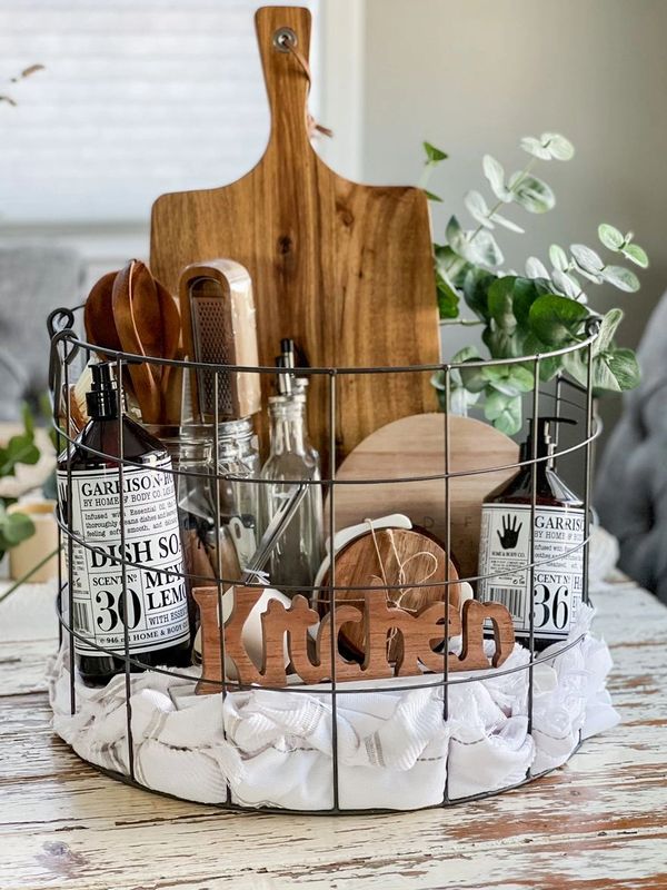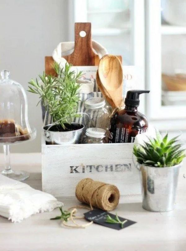 Do you have a cooking lover in your family. This makes the perfect gift. Lazed engraved cutting board, themed cookbook, personalized embroidered apron, fresh sage plant, wooden cooking spoons, and more kitchen items.